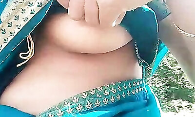 Tamil wife Swetha blouse less saree show